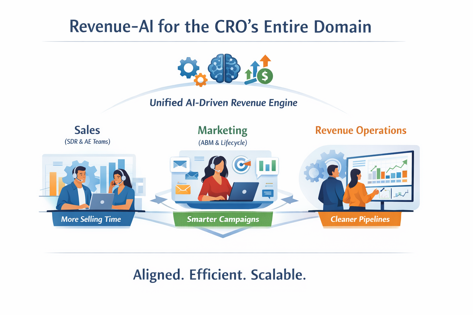 - Revenue acceleration through AI-powered SDR (Sales Development Representative) automation and smarter sales processes